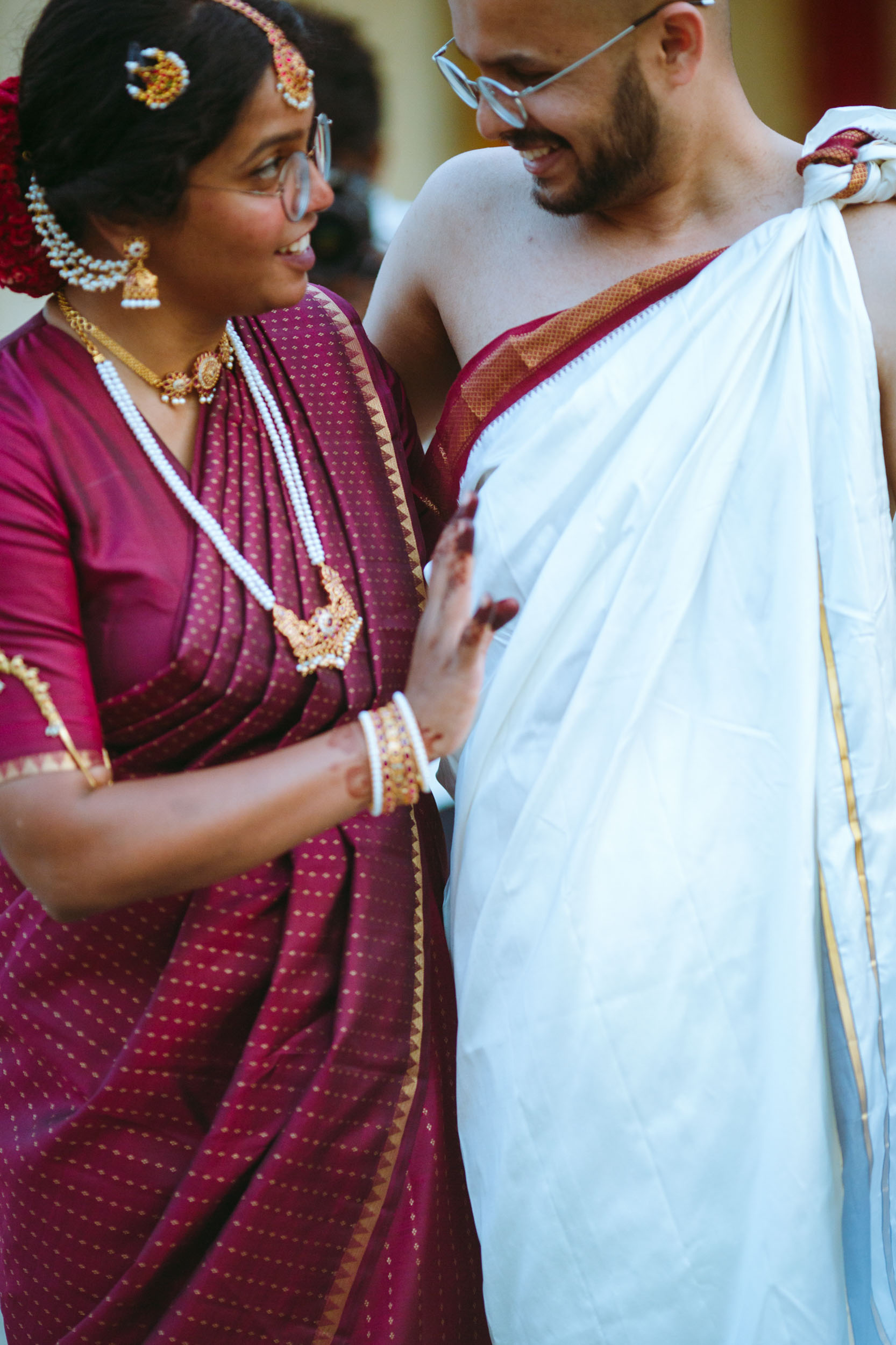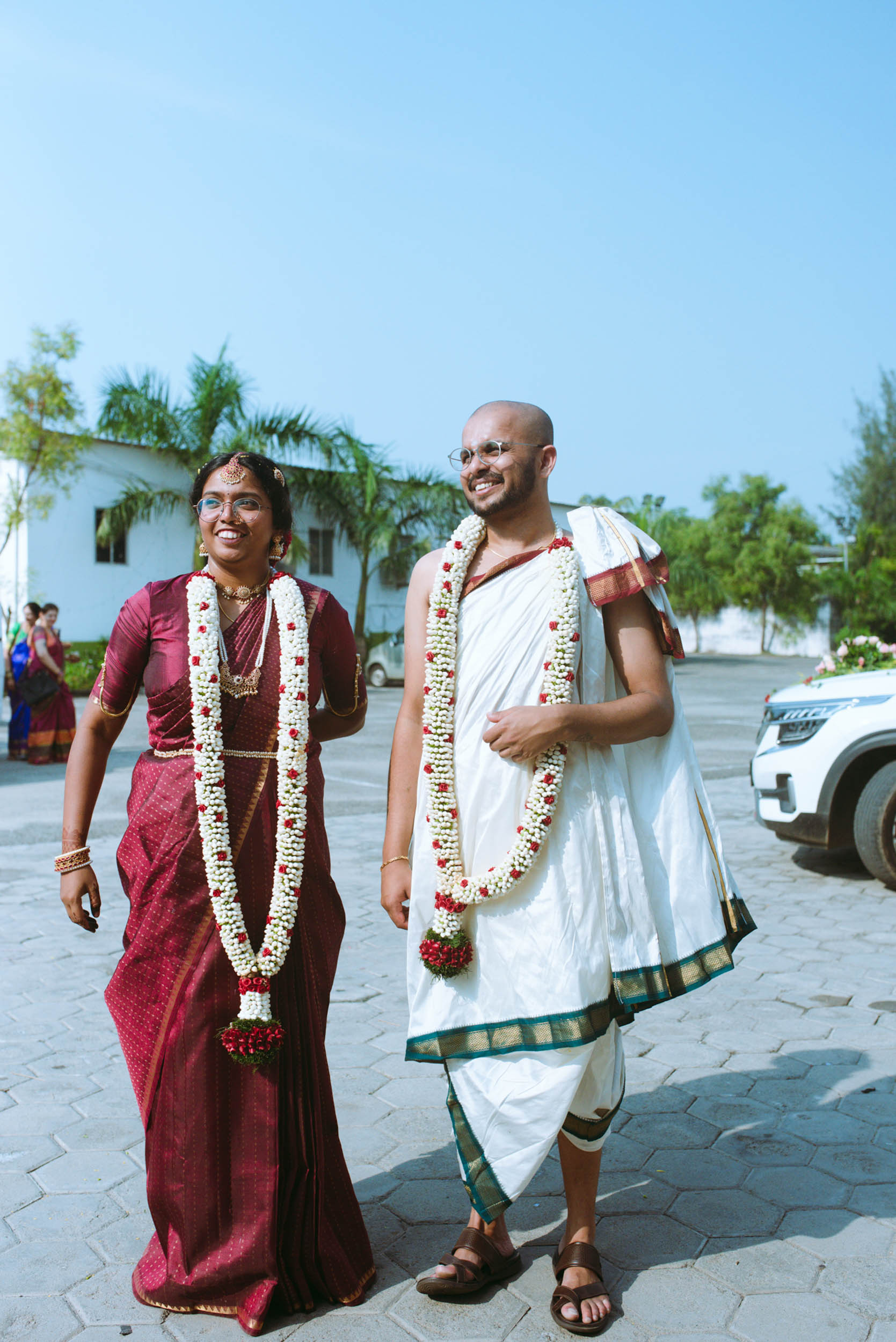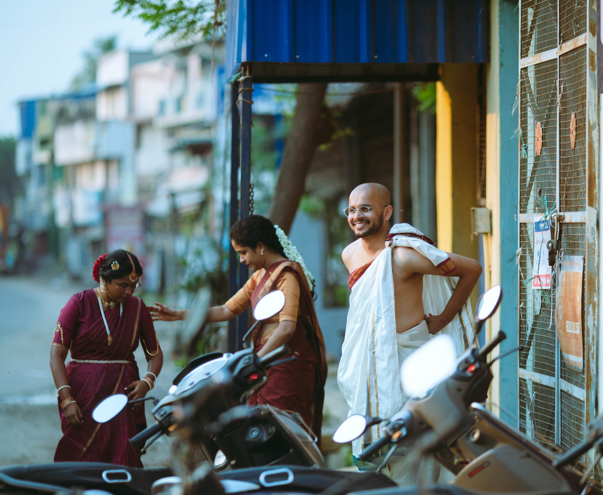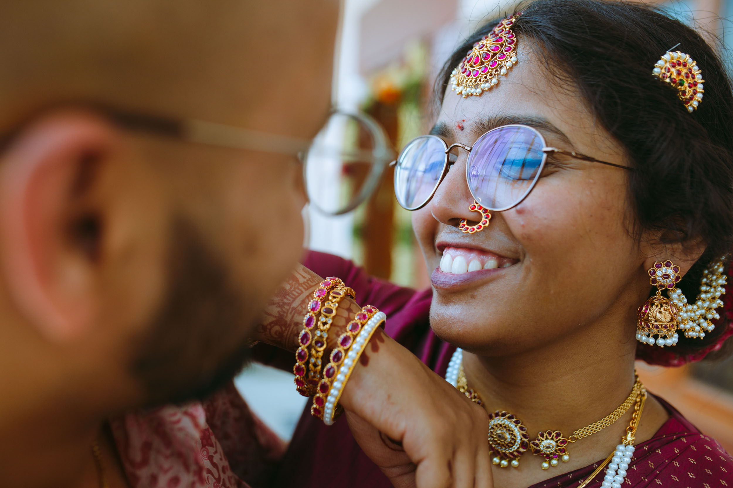 I now believe that if you’re meant to meet someone, you will meet them no matter what, whether you bump into them at a cafe or swipe-right on an app. One day, a calm, easy-going Nithin meets an enthusiastic, fun-loving Bhavi, and the two fall irrevocably in love. So, on a bright, sunny day, Bhavi & Nithin tied the knot at a ceremony as unique as their love, surrounded by big smiles, loud cheers, & a lot of laughter.